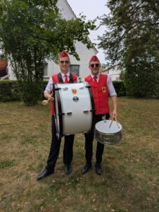 Am 14.07.2025 folgte nun der letzte Tag des Schützenfestes. Diesen starteten wir ganz früh mit einen Weckruf durch das Dorf, wo wir natürlich auch bei dem ein oder anderen eingekehrt sind. Anschließend holten wir den König und die Hofherren zum Frühschoppen ab. Ein Halt beim Kindergarten durfte natürlich auch nicht fehlen. Den Frühschoppen ließen wir nach einigen Getränken und einem guten Frühstück ausklingen. Weiter ging es am Abend, wozu wir das Königspaar und Hofstaat von Zuhause abholten und noch einen kleinen Umzug durch das Dorf machten. Anschließend begleiteten wir sie zu der großen Polonaise am Abend, wo unser Spiel natürlich nicht fehlen durfte. Traditionell für den Montag machten wir auch dieses Jahr wieder musikalische Stimmung am Königstisch. Ein Highlight dieses Jahr war der Stickdrill, der erstmalig von den Frauen ausgeführt wurde, da die meisten Musiker durch die Teilnahme im Hofstaat an dieser Aktion verhindert waren. Insgesamt war es dieses Jahr wieder ein gelungenes Schützenfest.