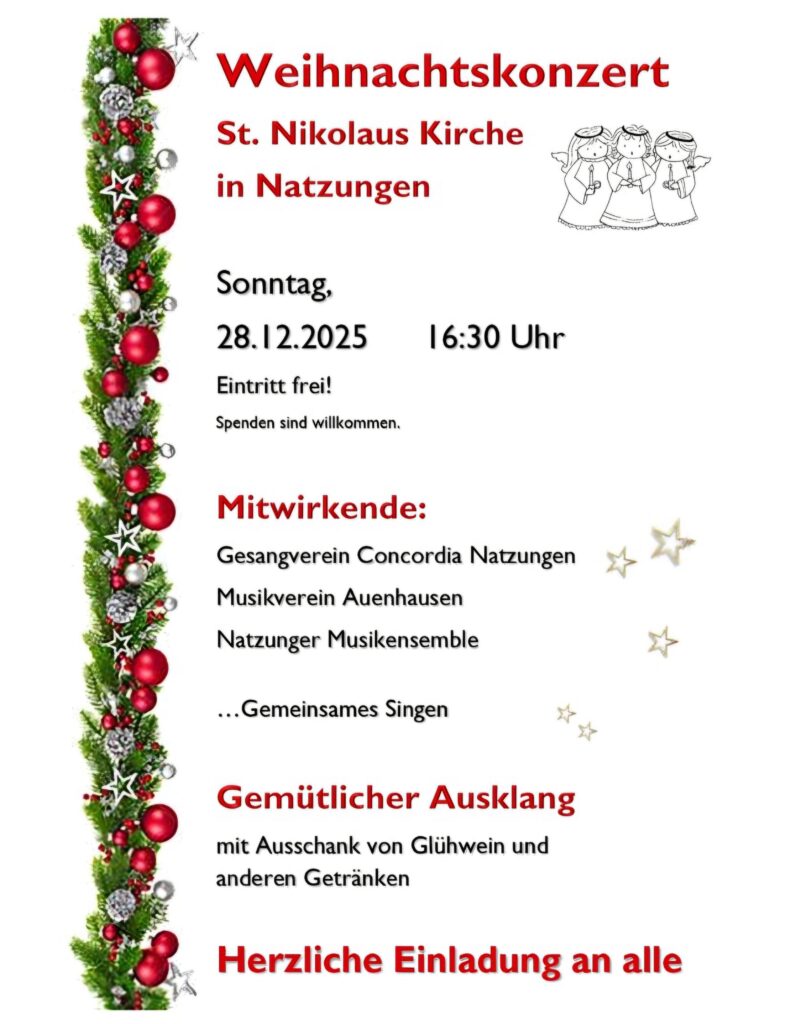 Weihnachtskonzert am 28.12.2025 23. Dezember 2025 von Volker Schlieker in Allgemein Herzliche Einladung an alle!